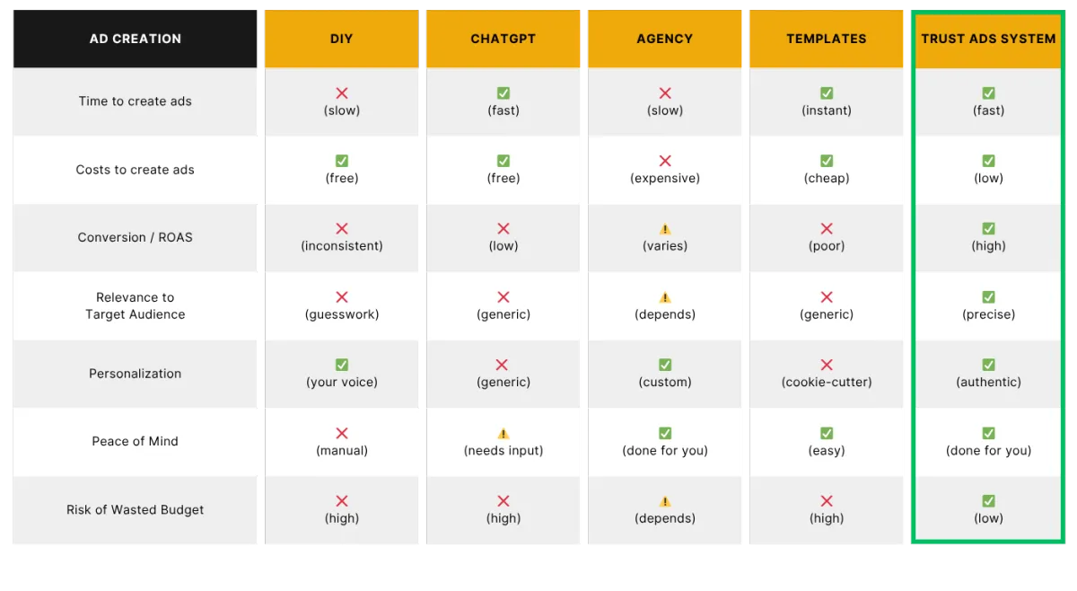 As you can see, the Trust Ads System is the only approach that delivers across every dimension that matters.